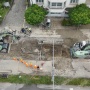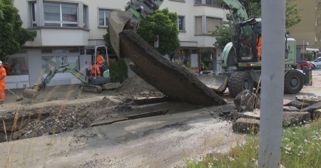 Una ditta edile privata ha scoperto la condotta danneggiata utilizzando due escavatori gommati e uno aspirante. L’asfalto e la ghiaia sono stati caricati su camion e portati via, affinché gli specialisti dell’acquedotto potessero sostituire la sezione danneggiata. Lo scavo è stato messo in sicurezza per evitare smottamenti del terreno.