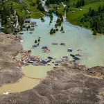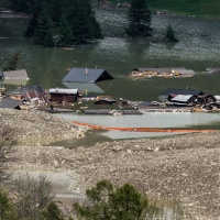Le colate torrenziali che si sono abbattute sulla zona dopo le intemperie della scorsa settimana hanno trasportato detriti di legno, terra e grossi sassi. È stato necessario costruire una nuova diga di protezione.