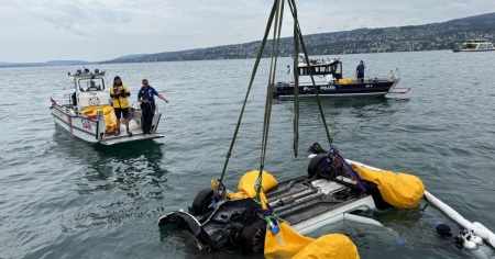 Cade dal traghetto e finisce con l'auto nel lago di Zurigo