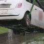 Per recuperare il veicolo è stato necessario abbassare il livello dell'acqua. Sul posto pompieri e polizia.