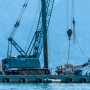 Le operazioni sono state condotte con l'ausilio di una chiatta dotata di una gru e di un argano