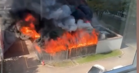 Dopo la forte esplosione, il rogo colossale avvolge l'edificio dell'Università