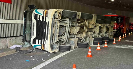 Il primo ha avuto luogo poco dopo le 15.30 all'uscita dell'autostrada A5 nei pressi di Biberist (SO). Stando alla polizia cantonale solettese, un camionista 50enne avrebbe perso il controllo del proprio mezzo in una curva a sinistra della galleria Spitalhof. L'autoarticolato si è ribaltato su un fianco e ha urtato la parete del tunnel.