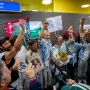 Ad attenderli allo scalo di Ginevra Cointrin una folla di amici, parenti e semplici sostenitori, che sventolavano striscioni e cartelli inneggianti al ritorno degli attivisti. Molte le bandiere palestinesi.