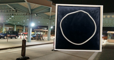 Il preziosissimo collier è stato identificato dalle guardie di confine che presiedevano il valico di Basilea: in corso indagini su un 64enne lussemburghese.