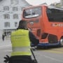 Attorno alle 13.00, per motivi al momento sconosciuti, il torpedone è salito sul marciapiede, ha urtato un semaforo e ha poi concluso la sua corsa contro la facciata del museo d'arte.