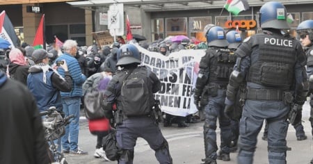 La manifestazione non autorizzata - in solidarietà di Gaza e il popolo palestinese - andata in scena sabato è rapidamente degenerata. Un nutrito gruppo di dimostranti incappucciati, ritenuti appartenenti agli ambienti dell'estrema sinistra, si è mosso tra le prime file del corteo dando origine a violenti scontri con le forze dell'ordine. Gli agenti in antisommossa hanno risposto con gas lacrimogeni e idranti e hanno fermato temporaneamente centinaia di persone.