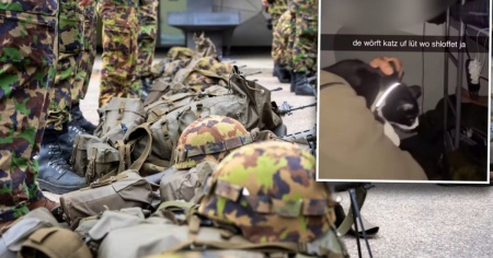 LENZBURG - 1° maggio 2025. Un militare cammina al buio in una caserma, con un gatto in braccio, dirigendosi verso dei letti. Poi afferra l'animale e lo lancia sui soldati addormentati. È ciò che mostrano delle riprese video girate nella caserma di Lenzburg (AG) ottenute da 20Minuten.