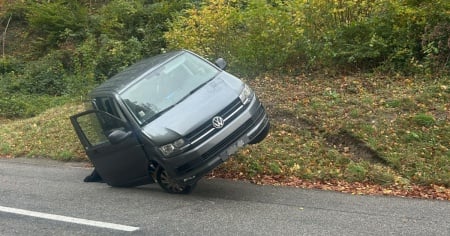 Fortunatamente la corsa dell'auto si è arrestata dopo alcuni metri, contro un terreno in salita. Il veicolo è rimasto bloccato in posizione inclinata. Il veicolo, un Volkswagen T6, ha riportato ingenti danni.
