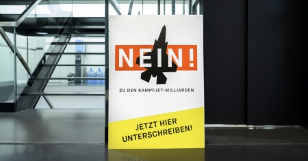 Con quasi 90'000 firme raccolte, di cui 65'874 vidimate, il PS Svizzero, i Verdi e il GSsE hanno consegnato oggi il referendum “No ai miliardi per gli aerei da combattimento” assieme a Greenpeace, la Gioventù Socialista, i Giovani Verdi e a diverse associazioni pacifiste. A sei anni dal NO ai Gripen, il popolo sarà chiamato ad esprimersi nuovamente sull’acquisto di nuovi aerei da combattimento. «Molte persone sono indignate che la proposta attuale costa il doppio rispetto ai Gripen. La popolazione non vuole aerei da combattimento di lusso!», ha commentato Laura Riget, segreteria del GSsE.