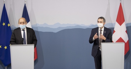 Il consigliere federale Cassis e il ministro francese Le Drian hanno discusso inoltre di questioni transfrontaliere ed evidenziato la qualità delle relazioni bilaterali. Per quanto concerne il dossier europeo, il capo del DFAE ha informato il suo omologo della situazione attuale e delle prossime tappe.