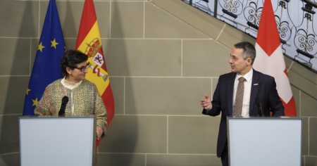 BERNA - Il consigliere federale Ignazio Cassis ha incontrato oggi a Berna la ministra spagnola degli affari esteri, dell'Unione Europea e della cooperazione Arancha González Laya. Le discussioni si sono concentrate in particolare sulla lotta contro la pandemia, sulle relazioni con l'Ue e sui rapporti bilaterali tra la Svizzera e la Spagna.