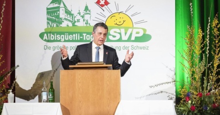 L'intervento del presidente Ignazio Cassis al raduno dell'UDC zurighese all'Albisgüetli.