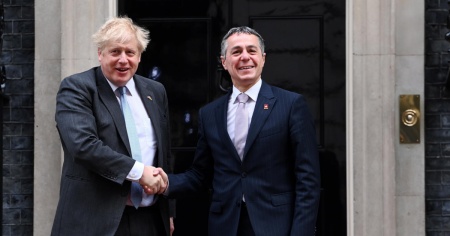 Dopo l'incontro con Johnson, il presidente svizzero e sua moglie hanno avuto anche l'onore di un'udienza con la regina Elisabetta II al castello di Windsor, fuori Londra. Nel corso della giornata, sono poi previsti anche colloqui con la Ministra degli esteri Liz Truss.