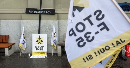 BERNA - Con una "cerimonia di lutto" gli oppositori ai jet da combattimento hanno manifestato oggi a Berna contro il «mancato rispetto dei diritti democratici». Il motivo del malcontento è la firma del contratto di acquisto degli F-35 da parte del Consiglio federale.
