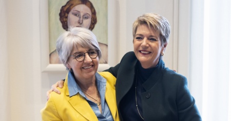 BERNA - Approfittando di un periodo di relativa calma dopo la fine della sessione invernale delle Camere federali, la consigliera federale Karin Keller-Sutter ha ceduto oggi le chiavi del suo ufficio, e simbolicamente del Dipartimento federale di giustizia e polizia, alla neoeletta in governo, la socialista giurassiana Elisabeth Baume-Schneider.