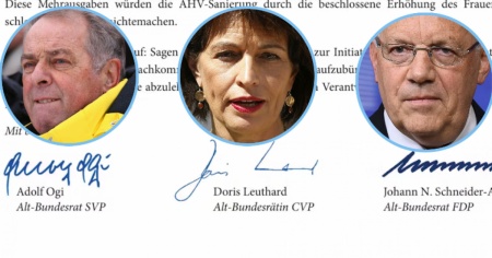 Questa settimana nelle buche delle lettere della Svizzera tedesca, assieme al materiale di voto, arriverà una lettera - che 20 Minuten ha già ottenuto in esclusiva - firmata da un gruppo di eminenze grigie politica elvetica, ovvero gli ex-consiglieri federali Adolf Ogi (81 anni, UDC), Doris LEuthard (60 anni, Centro ex-PPD) e Johan Schneider-Amman (71, PLR).