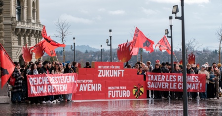 Numerosi i membri e i simpatizzanti della GISO Svizzera e alleati presenti davanti alla Cancelleria federale: dal lancio dell'iniziativa nell'agosto 2022, sono state raccolte più di 140'000 firme, di cui almeno 110'000 valide. «Il successo della raccolta dimostra che la popolazione vuole una politica climatica coerente e socialmente equa. Le persone vogliono che i super ricchi paghino per la lotta alla crisi climatica», ha dichiarato Melanie Rufi, vicepresidente della GISO Svizzera.