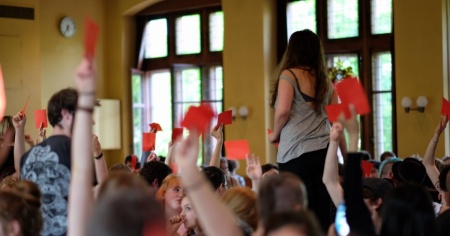 I delegati della Gioventù socialista svizzera hanno votato una presa di posizione in favore di una sanità solidale.