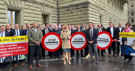 L'UDC ha consegnato oggi alla Cancelleria federale le sottoscrizioni all'iniziativa "Fermare gli abusi nell'asilo».