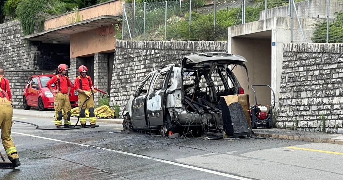 Veicolo in fiamme sulla cantonale a Balerna: salvo il conducente