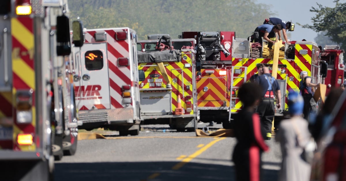 Bus a gas si scontra con un'auto e prende fuoco: 2 morti