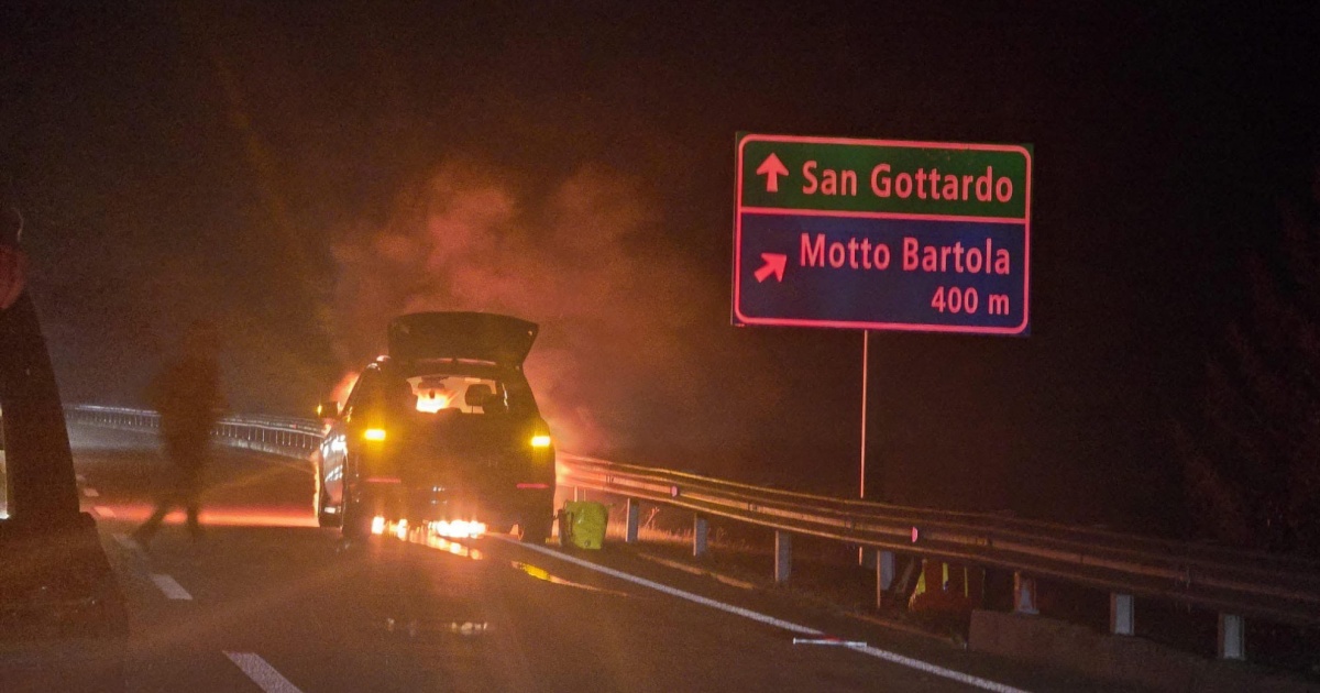 Auto in fiamme sul passo del Gottardo, nessun ferito