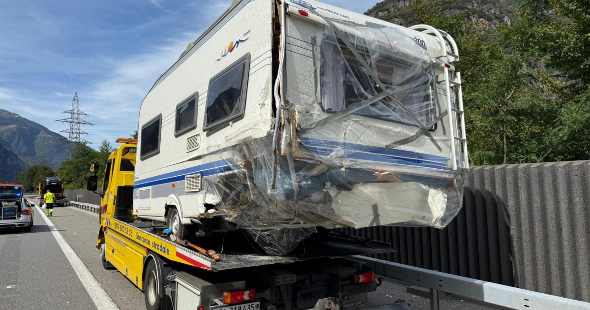 Auto tampona roulotte sull'A2: traffico in tilt