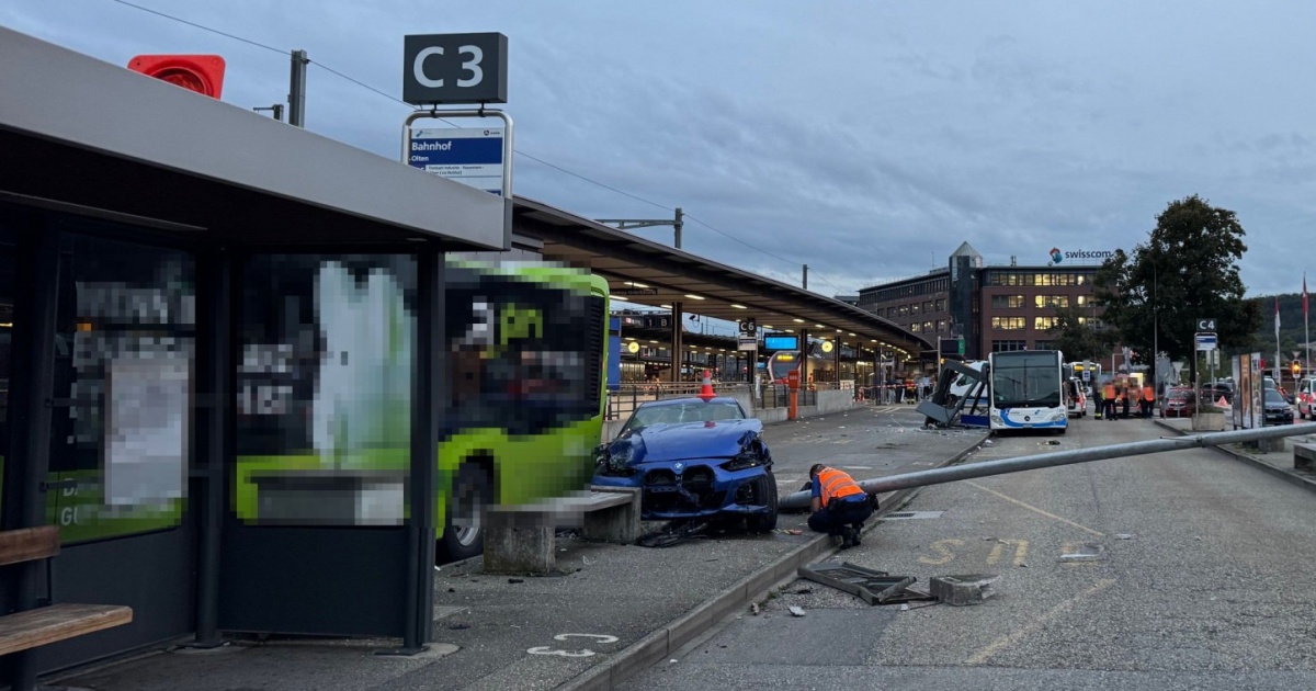 Auto contro una pensilina dei bus: 3 feriti
