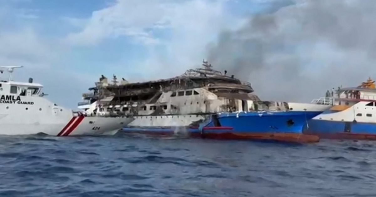 Traghetto in fiamme, i passeggeri si gettano in mare