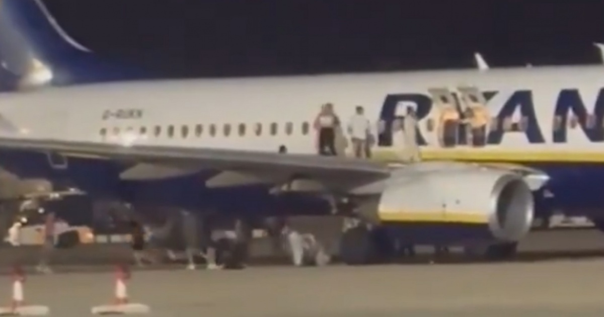 Incendio a motore di un aereo Ryanair: passeggeri giù dallo scivolo gonfiabile