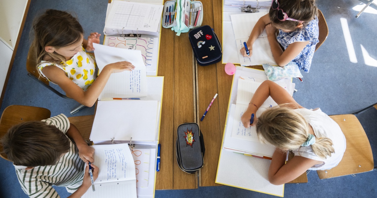 Bambini a scuola (in vari cantoni), nonostante la canicola