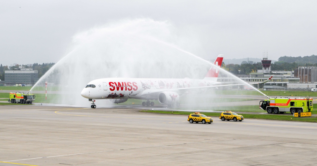 Atterrato a Zurigo l'A350, il nuovo aereo di Swiss: «Una dichiarazione d’amore alla Svizzera»