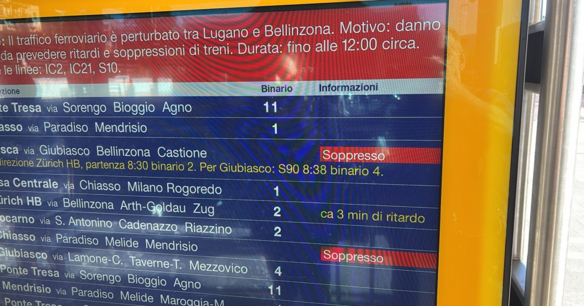 Danno ai binari, limitazioni alla circolazione fra Lugano e Bellinzona