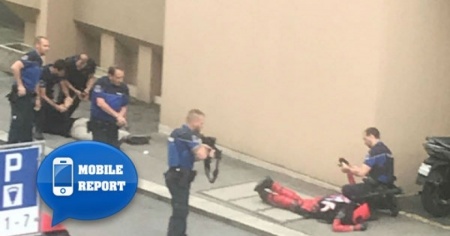 Le foto giunte in redazione testimoniano l’intervento da parte della polizia, che ha provveduto ad immobilizzare il supereroe e un’altra persona, vestita normalmente.