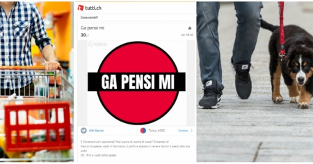 E proprio per queste persone c’è chi ha pensato bene di reinventarsi. Come Alessio, che con un annuncio pubblicato su tutti.ch ha fatto scalpore. “Ga pensi mi”, titola, riassumendo tutti i servizi che offre. «Il coronavirus ti spaventa? Hai paura di uscire di casa?», chiede al suo acquirente. «Ci penso io!» è la risposta. Per 30 franchi all’ora (più i costi delle spese) «faccio la spesa, vado in farmacia, ti porto a spasso il cane e faccio il pieno alla tua auto».