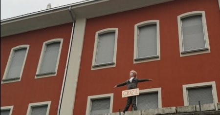 Gli organizzatori del carnevale ambrosiano di Brissago hanno addobbato il loro fantoccio con una mascherina