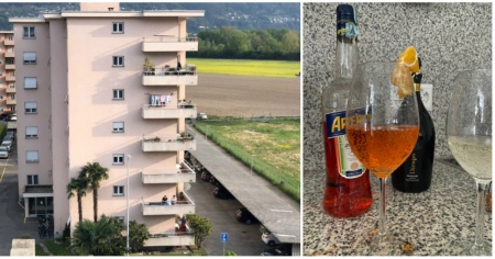 LOCARNO - Tutti sul balcone a fare un brindisi con la musica. È il flash mob di Pasquetta organizzato da alcuni ragazzi a Locarno, all’incrocio di via Varesi con via delle Scuole.