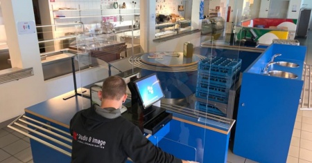 GIUBIASCO - Le riaperture del Ticino passano dalle mani di questi giovani. Sono gli operai dello Studio B Image di Giubiasco, una delle diverse aziende che stanno mettendo in sicurezza la società e l’economia che verrà. Mense scolastiche e aziendali, uffici pubblici e privati, posti di polizia, banchi di ricezione e molti altri luoghi di lavoro stanno affrontando in questi giorni una metamorfosi trasparente.