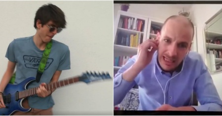 Andrea Nava, membro della compagnia teatrale “Voci Ateatro”, ha dato una dimostrazione pratica di com'è difficile per i docenti collegarsi con i ragazzi per impartire una lezione scolastica.
