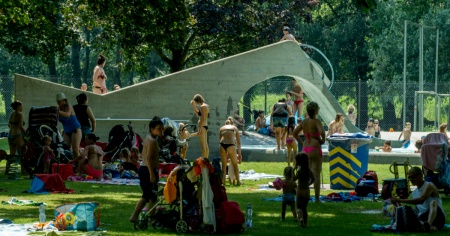 La distanza sociale è di due metri, sia in acqua sia sul prato. E c'è la doccia obbligatoria prima di entrare in vasca