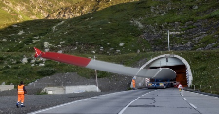 Le immagini - scattate all'alba dai fotografi di Tipress - lasciano a bocca aperta. A realizzare il trasporto (decisamente) straordinario è la ditta tedesca Enercon, per conto dell'Azienda elettrica ticinese (AET). La pala è la prima di quindici, che verranno installate sul Passo del Gottardo a formare il futuro parco eolico.