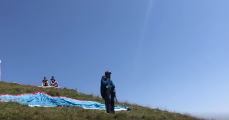 Diverse decine di fedeli hanno ascoltato la predica di Don Marco Notari, vicario parrocchiale di Balerna: al termine della cerimonia il sacerdote si è tolto l'abito talare, ha indossato l'imbragatura da parapendista ed è decollato, tra gli applausi dei presenti.