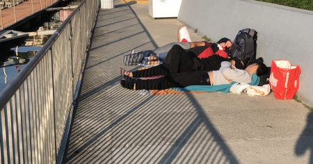 Un pisolino lungo il Cassarate, dopo la festa del venerdì sera. E i passanti storcono il naso