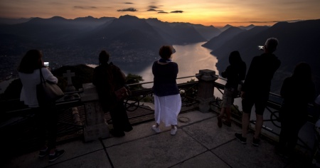 LUGANO - Un momento magico vale la levataccia. Nonostante l'orario - inizio ore 5.30 - un pubblico numeroso è accorso questa mattina in vetta al monte San Salvatore, per godere due spettacoli al contempo: l'alba sul Ceresio, e un concerto di m...