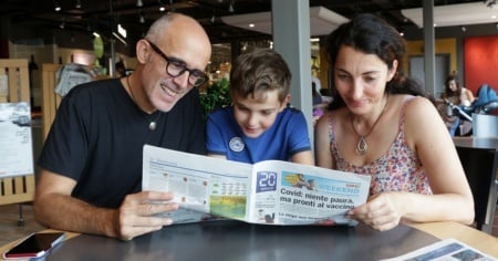 Una giovane famiglia incuriosita dal nuovo inserto.