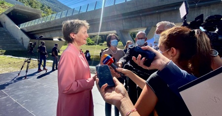 La Sempione-Novara - La presidente della Confederazione ha inoltre firmato con la ministra italiana Paola de Micheli un accordo sull'ampliamento della linea ferroviaria tra il Sempione e Novara. L'Italia s'impegna così a condurre lavori sulla linea per consentire, entro il 2028, il transito ininterrotto di semirimorchi di 4 metri di altezza agli angoli fino ai grandi terminali di trasporto a nord del Paese. Ciò permetterà di potenziare ulteriormente la politica di trasferimento del traffico. Per tale motivo, la Svizzera contribuirà alla loro realizzazione con 148 milioni di franchi, provenienti dal credito per l'ampliamento delle tratte di accesso ad Alptransit. I restanti costi saranno coperti dall'Italia.