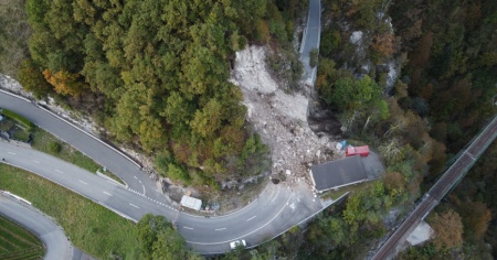 CAMEDO - È caduta mercoledì sera. E oggi le immagini riprese con un drone ne mostrano l'entità. Si tratta della frana di Camedo, che da quasi due giorni rende impossibile il transito lungo la strada che collega la Svizzera e Italia attraverso le Centovalli.