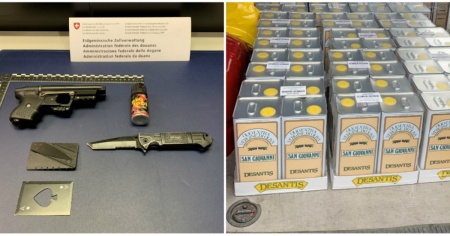 Ma è l’unico ritrovamento “particolare” di cui rende noto oggi l’Amministrazione federale delle dogane (AFD). Un secondo caso risale alla sera del 7 ottobre, al valico autostradale di Chiasso. L’auto fermata in entrata, con targhe zurighesi, era occupata da due quarantenni. Un cittadino svizzero e uno della Repubblica del Kosovo. La sorpresa è arrivata controllando l’interno del veicolo: una pistola con cartucce a gas, due carte di credito con una lama nascosta all’interno, un coltello, una mazza da baseball e uno spray per autodifesa proibito. Scoperta anche una patente di guida serba con contenuto contraffatto.