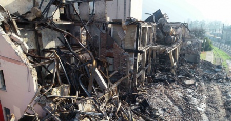 Continua l'intervento per la bonifica dell'area in cui restano i detriti dell'edificio devastato dall'incendio